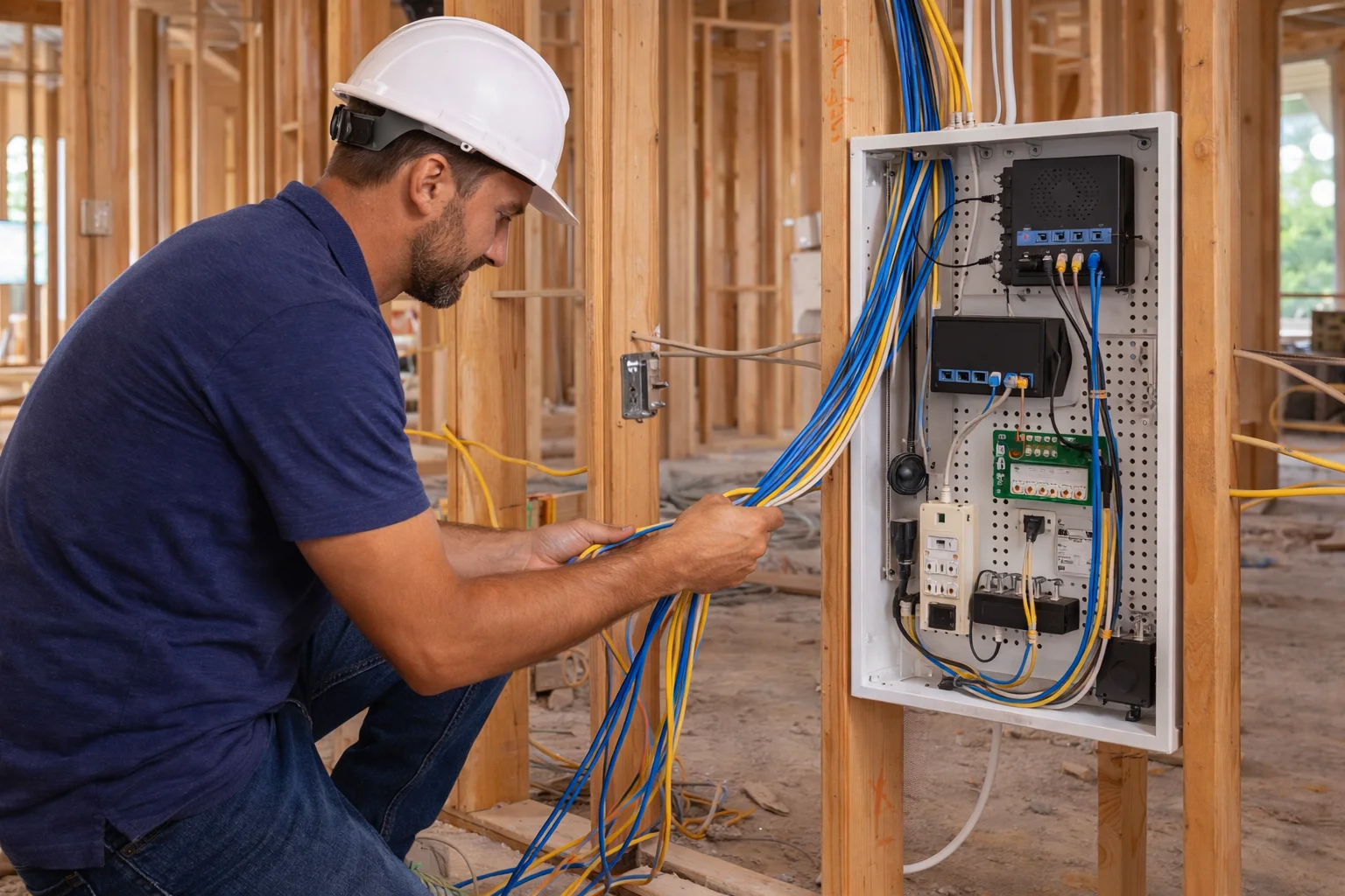 • Dedicated space for networking: Design a “tech hub” area in the home – a closet or panel with power outlets and ventilation – where a router, modem, and possibly a smart home hub can reside. Label it in the electrical plan. Homeowners will appreciate having a neat, central spot for the inevitable jumble of network gear, rather than scrambling later. This area could also house security system brains, NAS drives, etc., in an organized manner.
