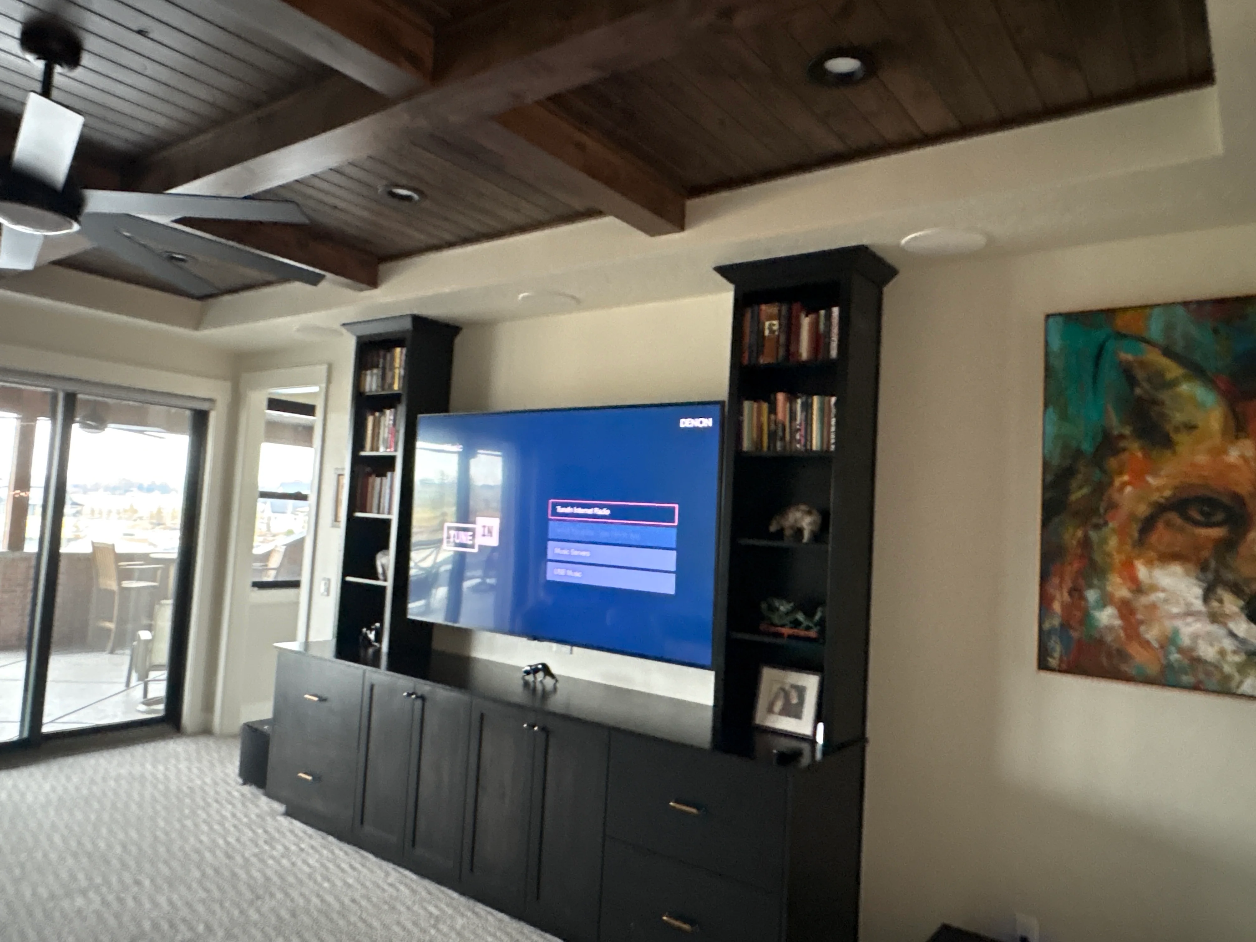 This project in Eagle, Idaho featured a comprehensive upgrade of in-ceiling audio and TV sound integration. The team replaced existing in-ceiling speakers with premium KEF CI Q Series models, renowned for their ultra-thin bezel and advanced Uni-Q driver technology. These speakers were seamlessly integrated into the home’s architecture, providing crisp, natural audio that fills the space with minimal visual footprint—a perfect harmony of design and performance. In addition to the ceiling speakers, a Sonos Arc/Arc Ultra soundbar was mounted to the homeowner’s TV, professionally installed and configured for immersive, cinematic sound. Energy-efficient wiring and setup ensured optimal audio quality throughout the home. The combination of state-of-the-art speaker swap-outs and the Sonos soundbar delivers an elevated listening experience, offering clear dialogue, deep bass, and effortless streaming. This project exemplifies top-tier craftsmanship in modern home audio solutions.